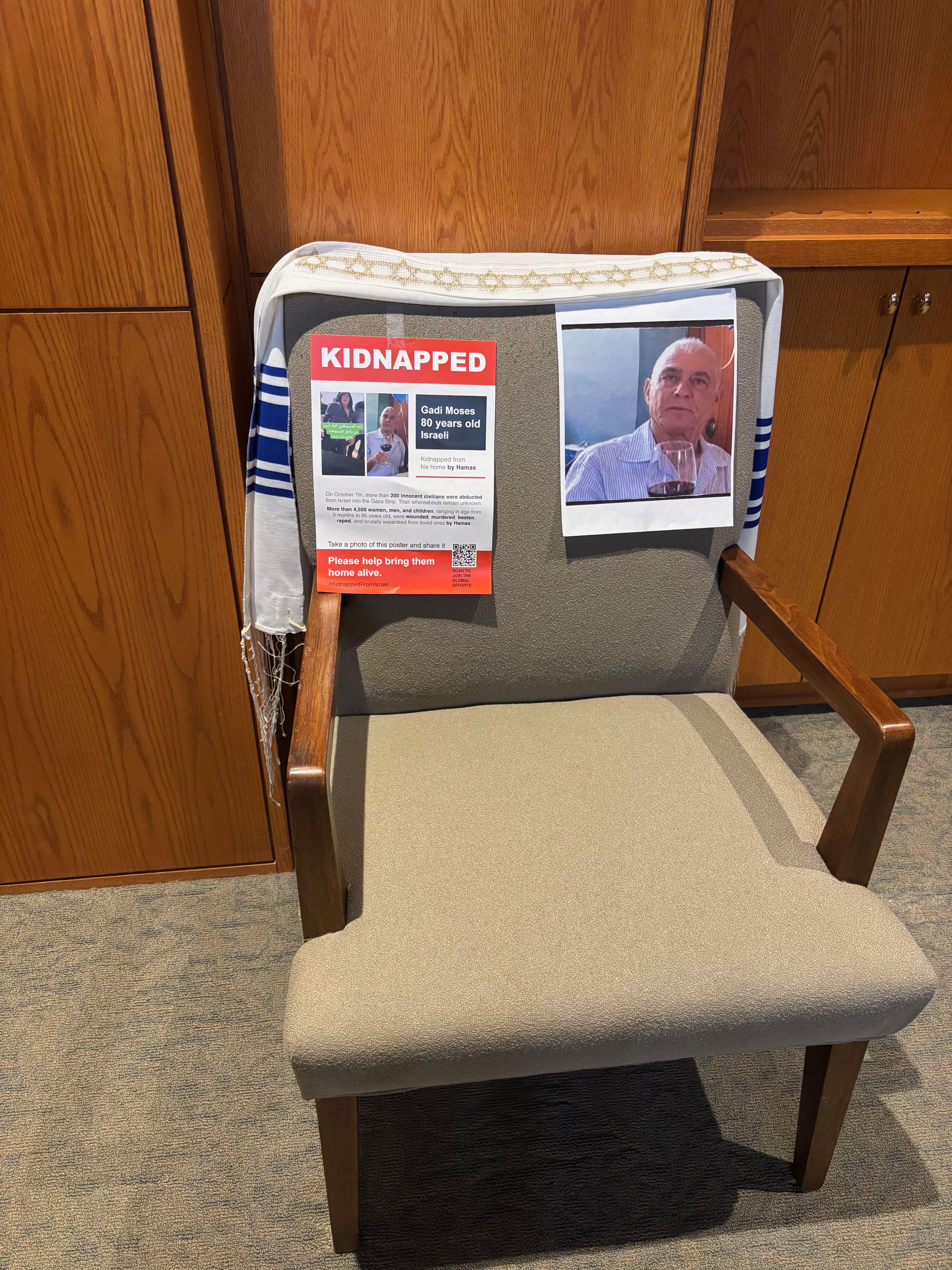 At the same time, I rejoice with relief at the images and video of the hostages who have been returned and reunited with their families. In particular, I am grateful that Gadi Moses, the hostage whose picture has occupied a chair on the Bima during our services and a chair in the meeting room during Kiddush and meetings, has been released.